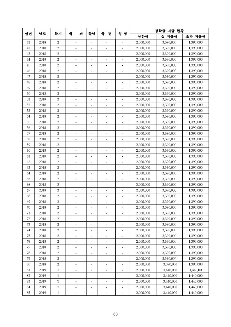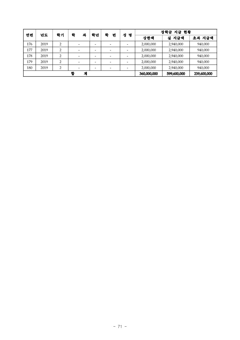 - 규정 등에 맞게 장학금을 지급 하기 바람