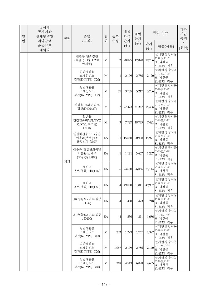 - 공사비과다지급액 합계11,136천원을 ◘◘ 등 3개시공 업체로부터 회수 하여 관련 회계에 세입조치하기 바람