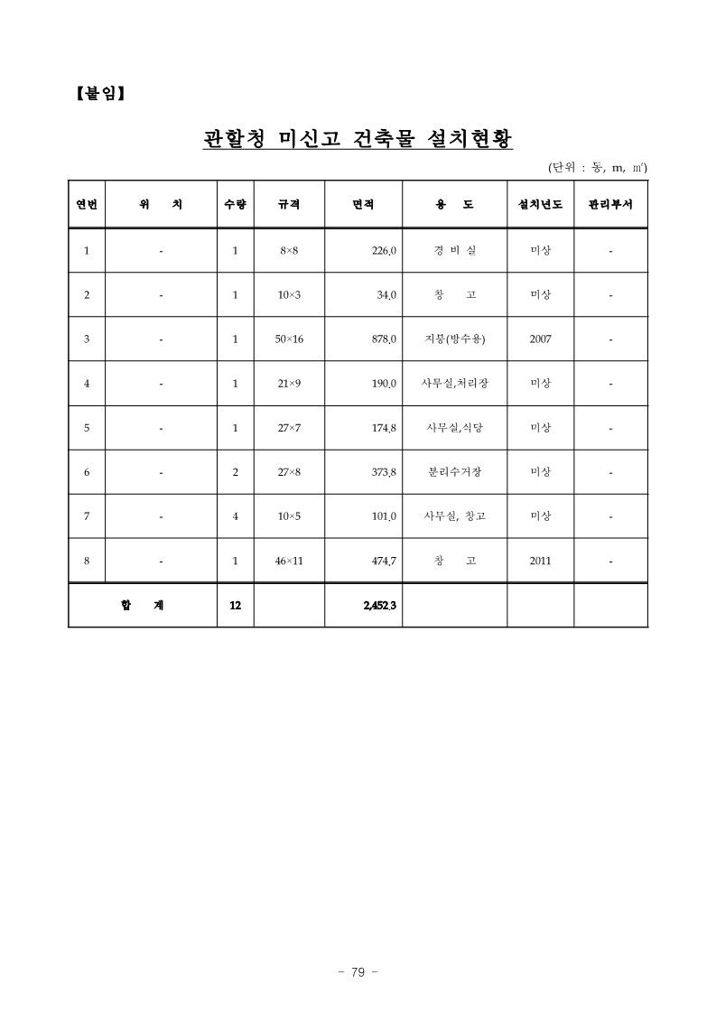 - 관할청신고없이 설치한가설건축물 8개동에대해법령 등규정에맞게 조치하기바람