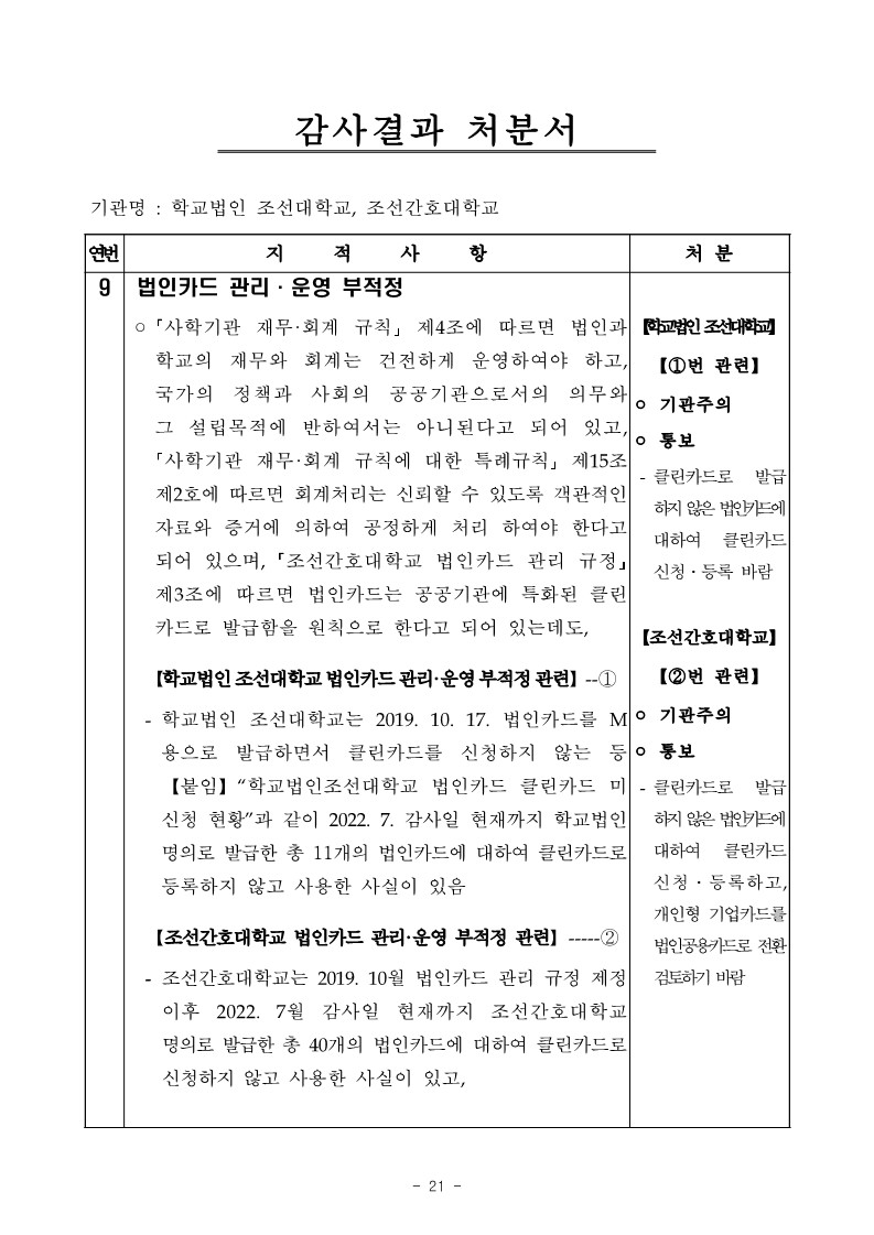 【조선간호대학교 법인카드 관리·운영 부적정 관련】-----②
