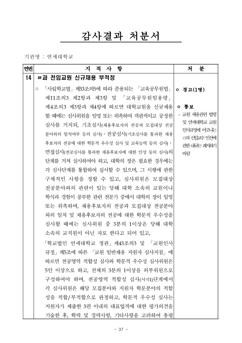 - 교원채용관련법령 및연세대학교교원 인사규정에어긋나는 ㄹ과신임교수인선에 관한내규는폐지하기 바람